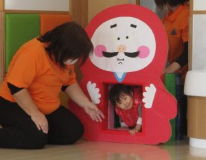 だるまさんに変身した子どもたちが、一人ずつ門をくぐって登場です![]()