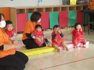 ?組さんは、お昼寝前で眠たかった事もあり、涙が出ちゃう子もいたり・・・![]()