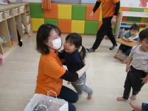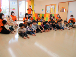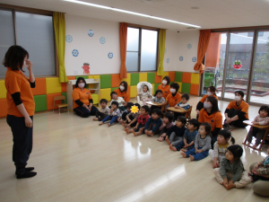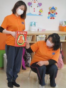 子どもたちに赤ちゃんの事を知ってもらう良い機会になる様に、≪おへそのあな≫という絵本を読んでもらいました![]()