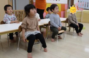 初めての絵本に、こどもたちはとても真剣な表情で見ていましたよ![]()