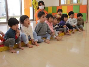 プーちゃんはどこに行くのかな?と、じーっとみつめている子どもたちの様子です![]()