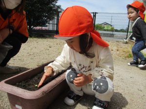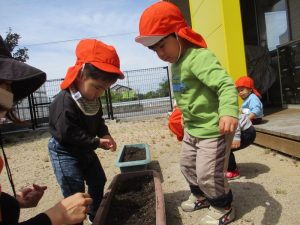 「ちゃんと育つかな~?」と心配な保育士ですが、子どもたちは喜んで菜園活動をしてくれました。