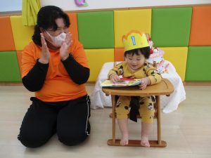 今月は1歳になるお友だちが主役の誕生日会でした![]()