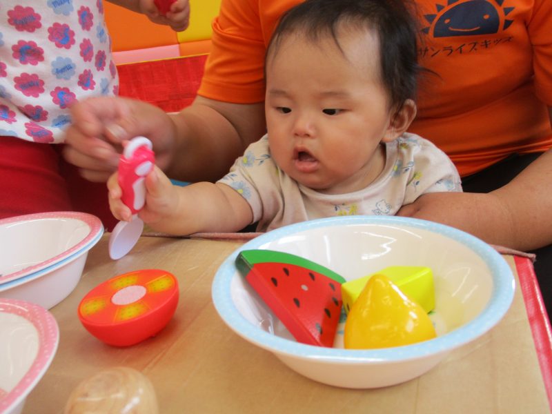 おままごとでは、まだ離乳食の赤ちゃんですが、しっかりとスプーンを持っていますよ?