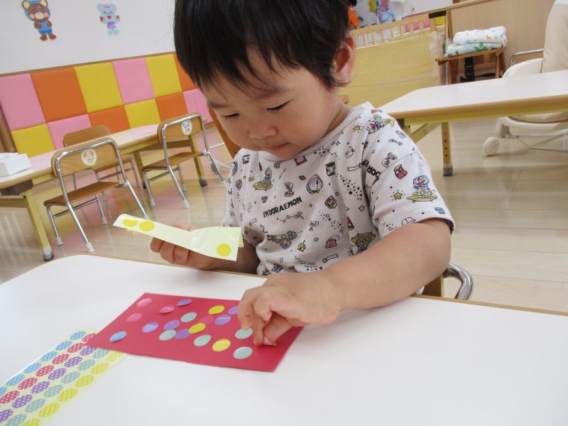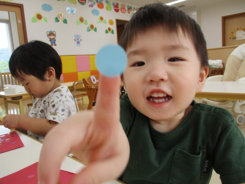 もも組さんは来週予定している夏祭り?に飾るちょうちん作りをしましたよ。