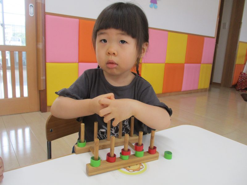 りんごさんがプラステンをすると色のこだわりがみられます。
