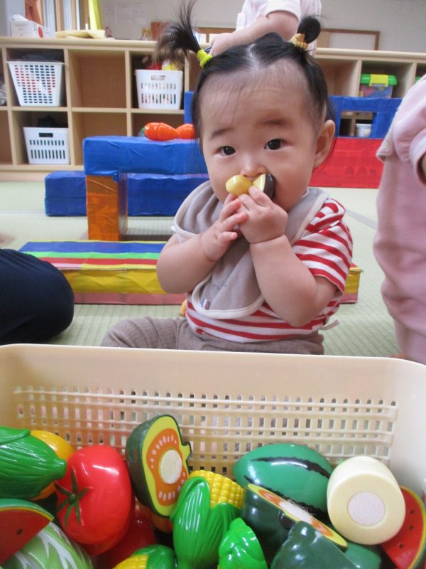 もも組のお友だちも、いちご組やりんご組のお友だちの中に入っておままごとを楽しんだり![]()