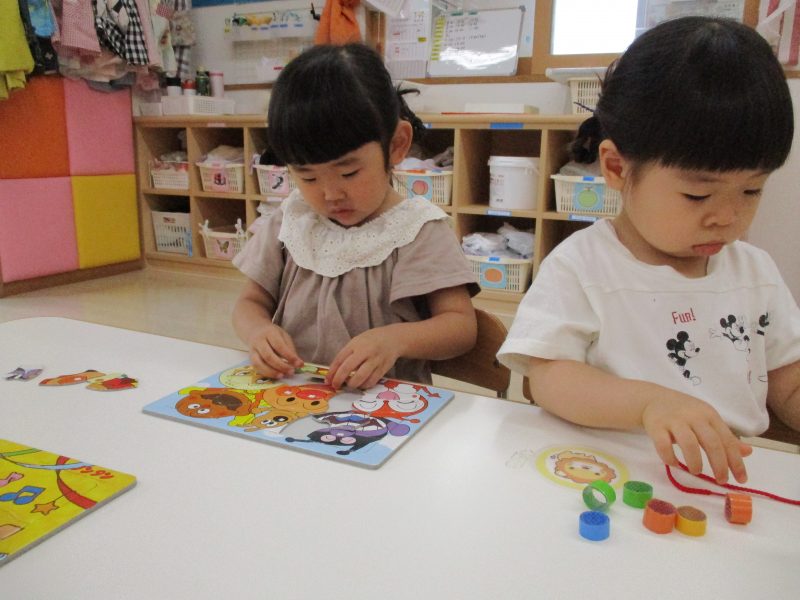 パズルや紐通しもして、集中力もバツグンでした![]()