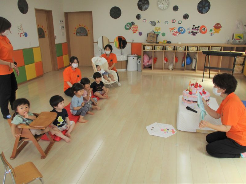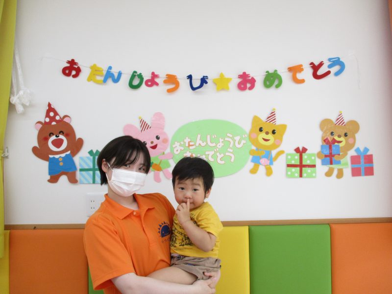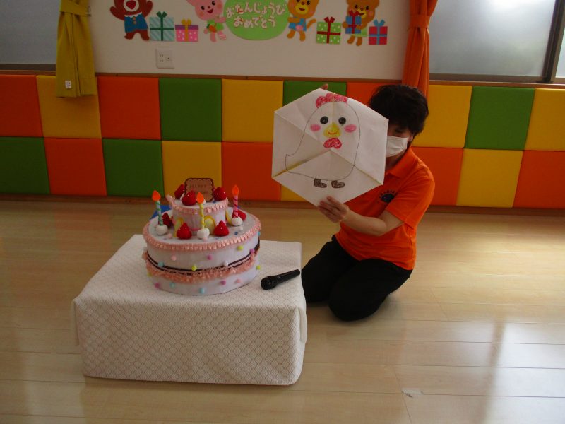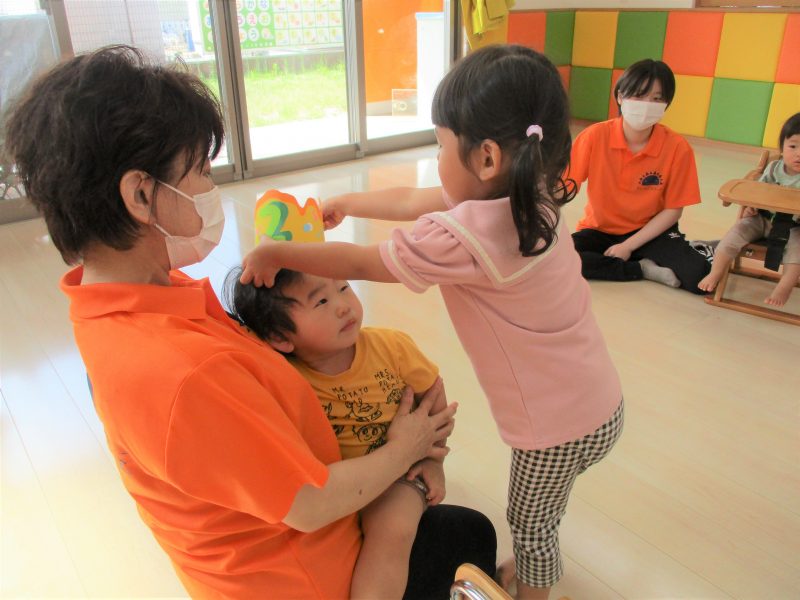 お友だちに冠をかぶらせてもらい、誕生日カードについている笑顔の自分の写真を見て、ご満悦の様子でしたよ![]()
