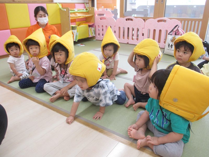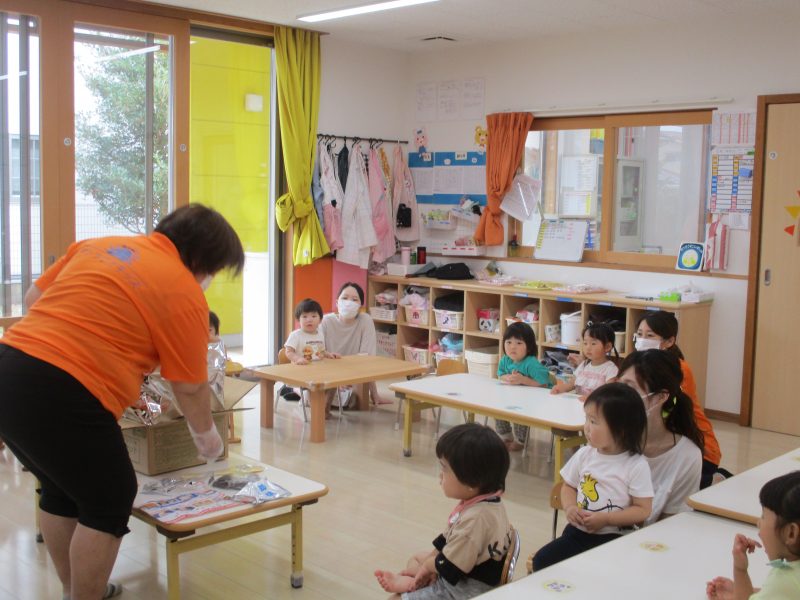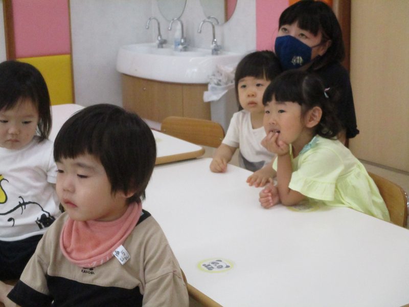 本番さながらの訓練の後という事もあり、紙芝居をみる子どもたちの顔も真剣でした?