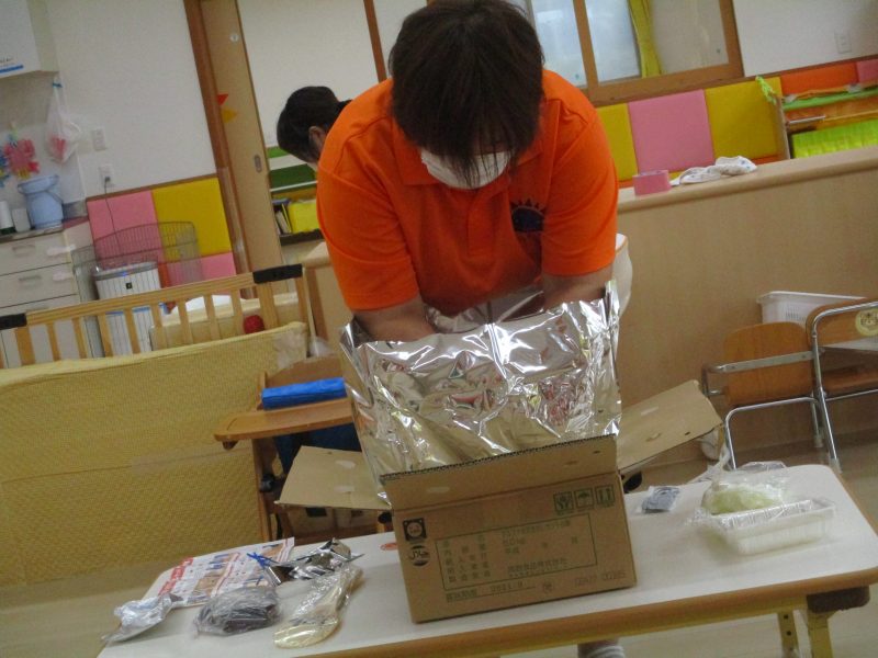 この日は、先生達も一緒に備蓄米を使ってカレーを食べました?