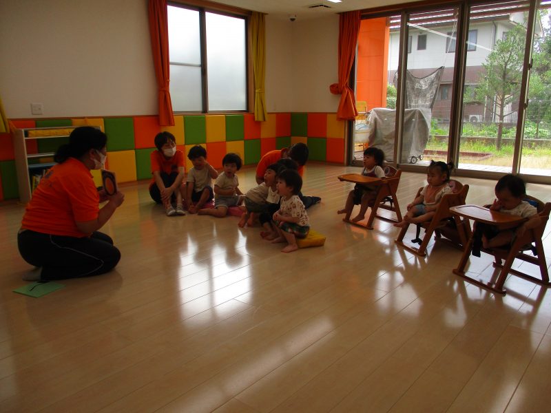 お月様がくもに隠れているのを真似して楽しむ姿が可愛らしいですね。