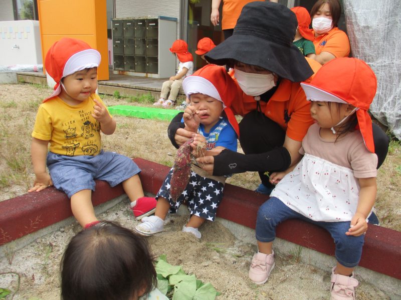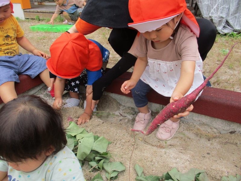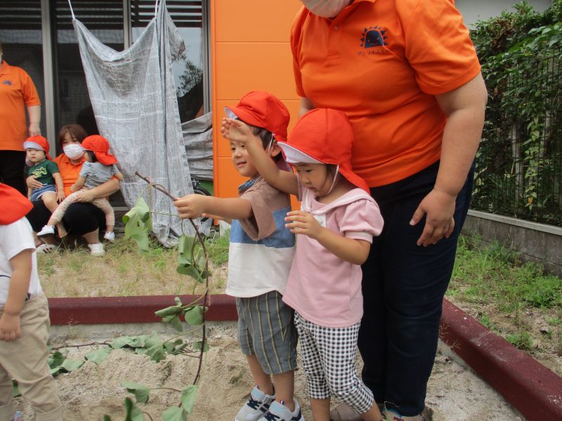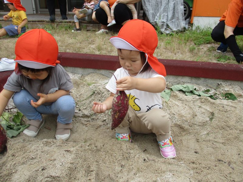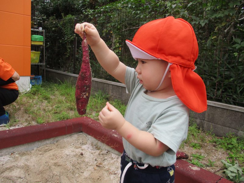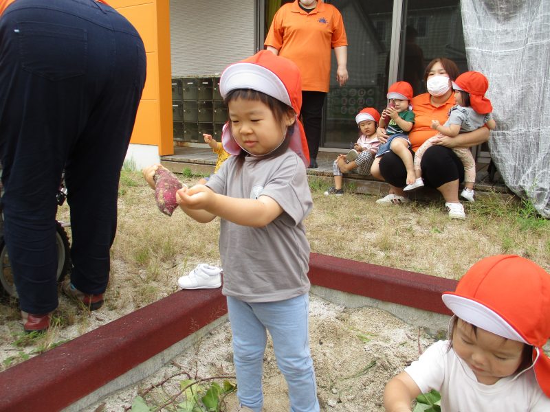 そうそう…「掘ったお芋はおみやげで持って帰ってもらおうか。」と保育士が言っているのを聞いて大きなお芋を自分の靴箱に持って行ってキープする子もいましたよヾ(≧▽≦*)o