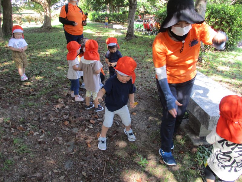 そして火曜日はいちご組ともも組でお散歩?に出かけました。