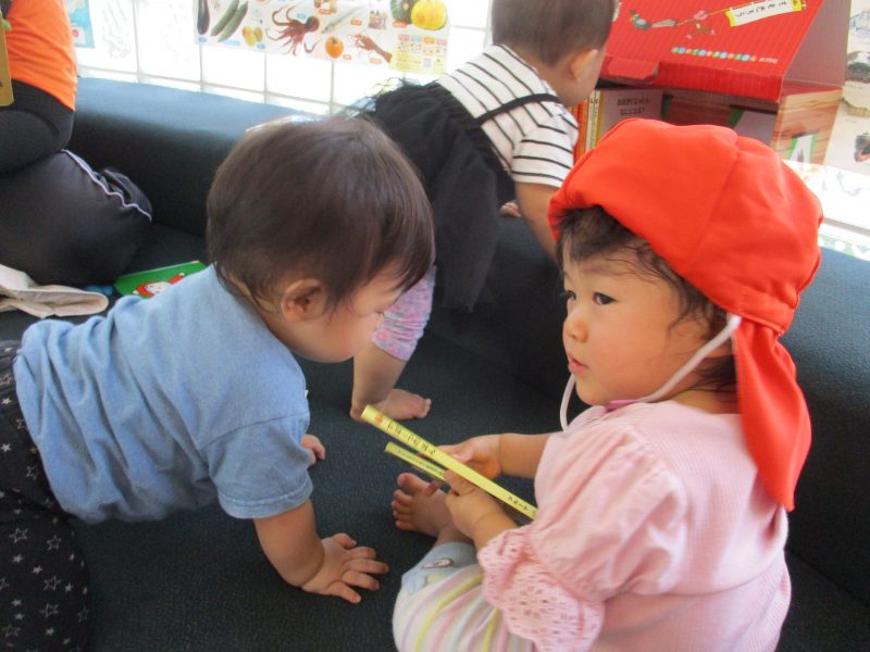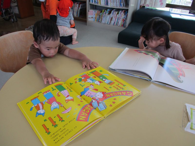 もも組のお友だちも積極的に絵本に手を伸ばしていますよ![]()