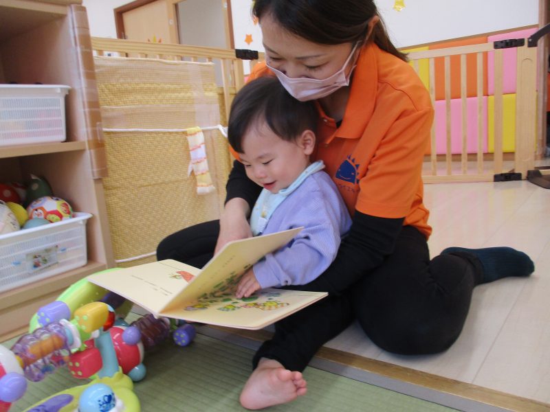 皆と一緒に読みきかせをしてもらうのも楽しいけど先生のお膝でよんでもらうのも大好きですよ![]()
