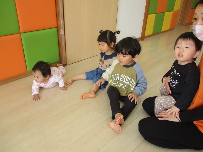 みんなで練習をして~。園長先生にお菓子をもらいましたよ?