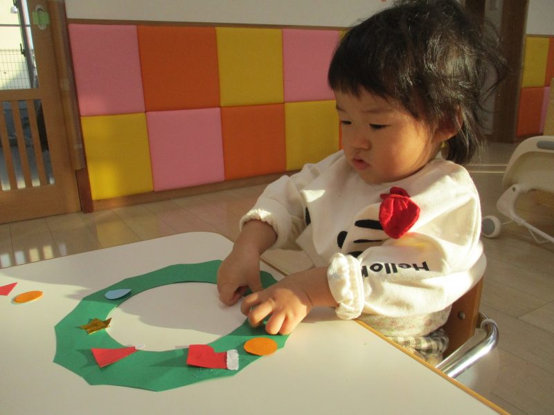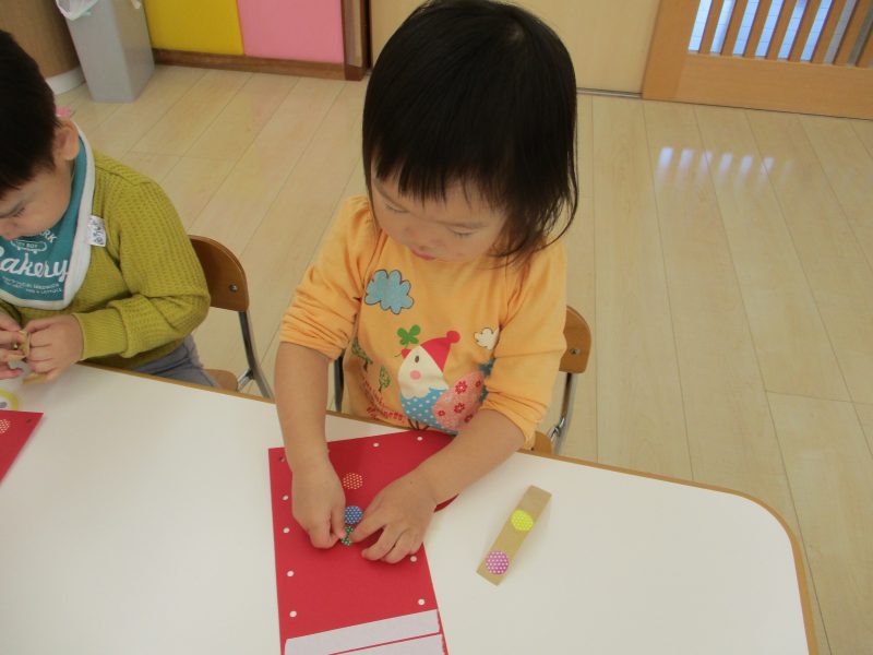 りんご組さんは先週からクリスマス?製作をしています。