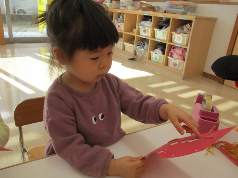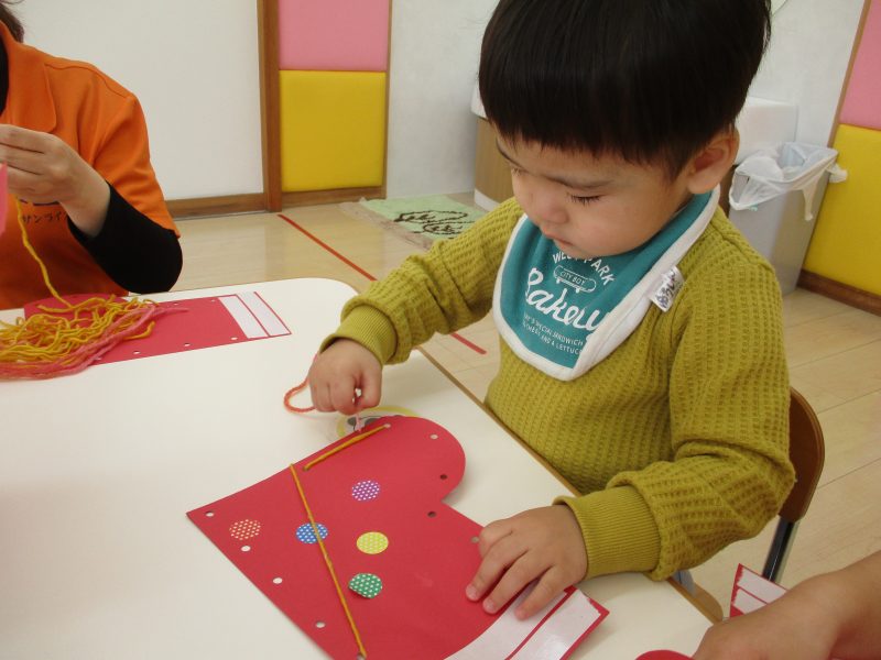普段から紐通しで遊んでいるのでとても上手にできましたよ。