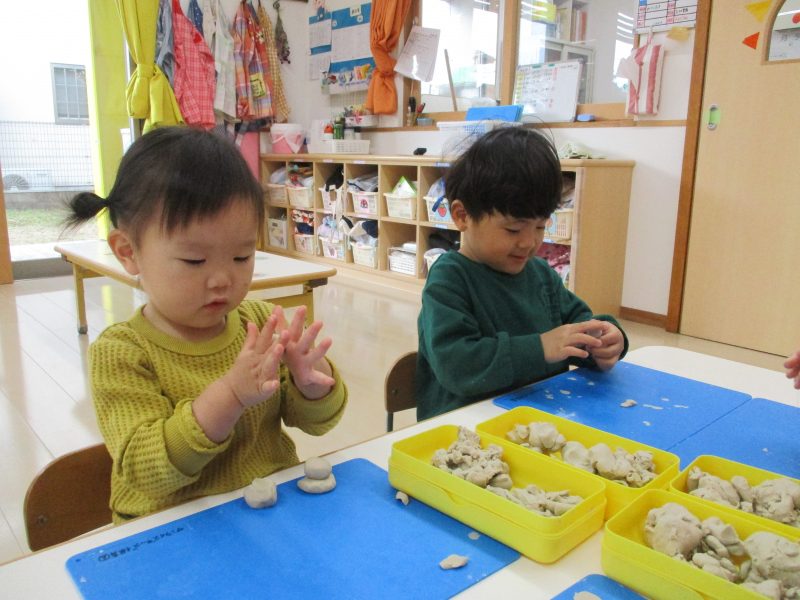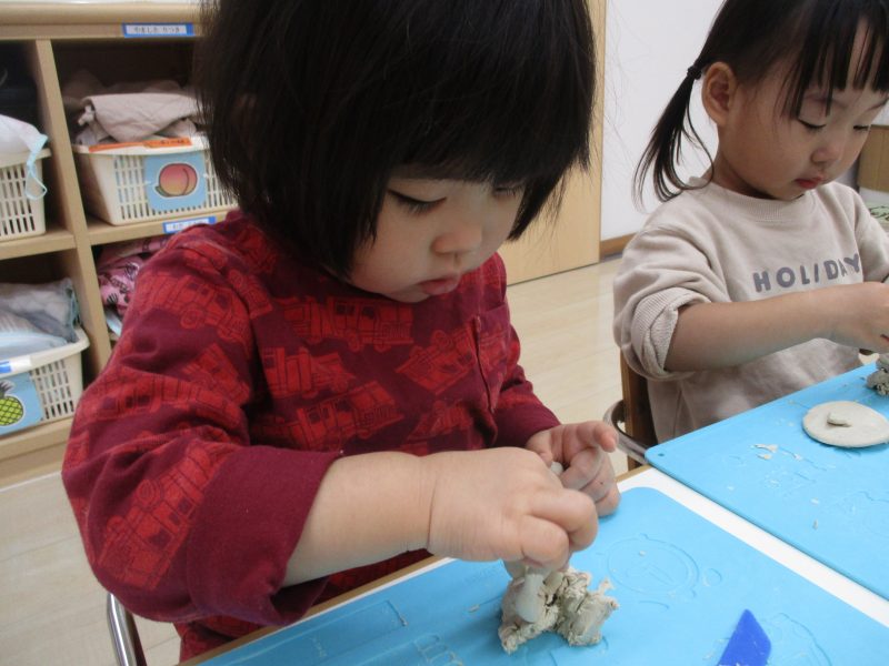 いちご組は粘土遊びに夢中になっていました。