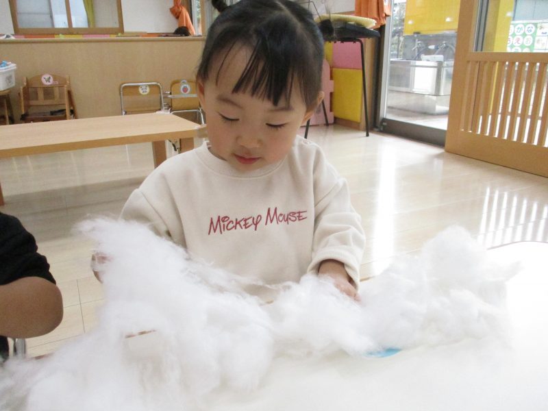 ふわふわの綿☁を使っての製作。