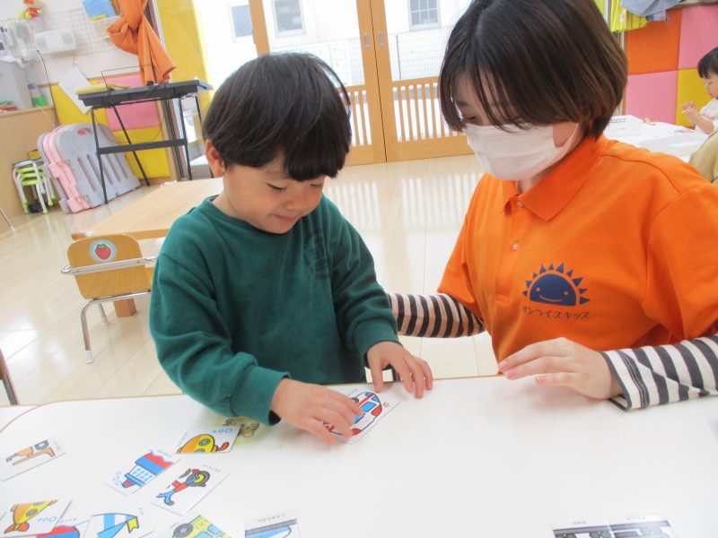 カード合わせでは真剣な表情?