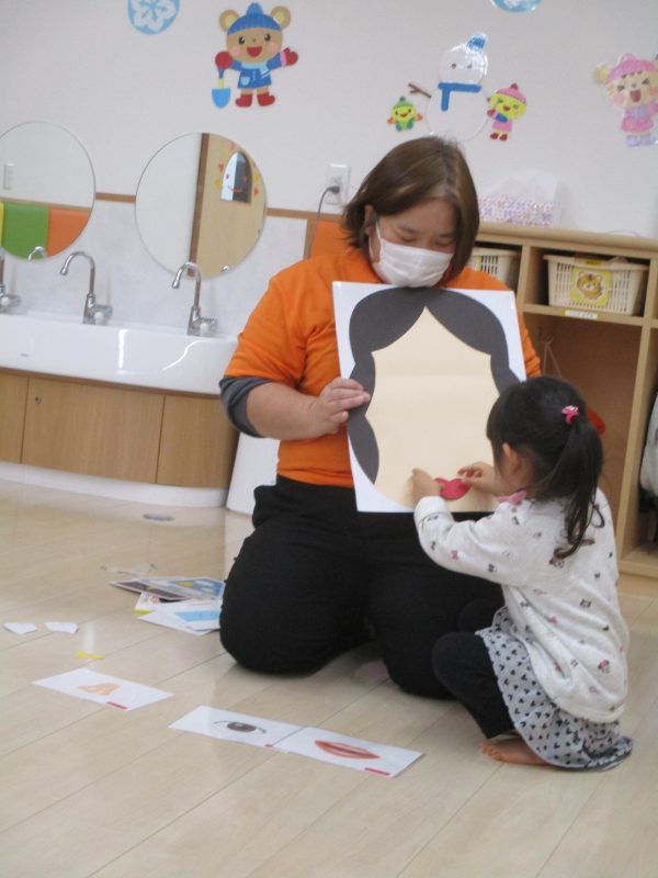?りんご組さんは福笑いをしましたよ。