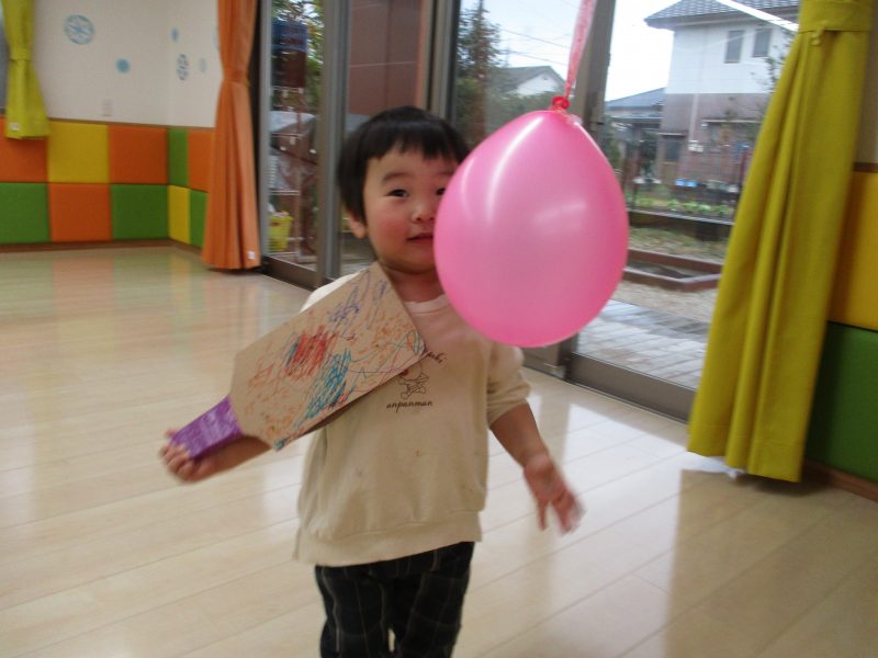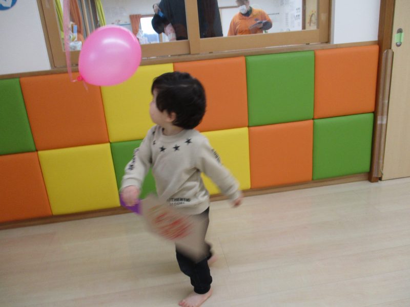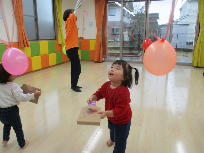 ?いちご組は羽根つき、ならぬ風船つき