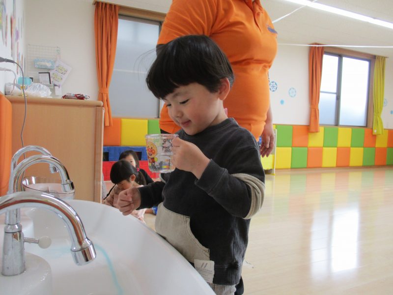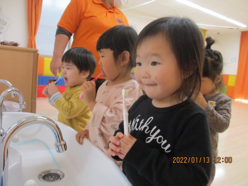 それからりんご組さんは今月から歯みがきをしています。