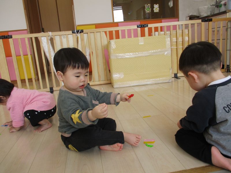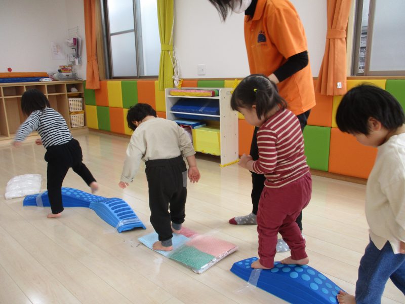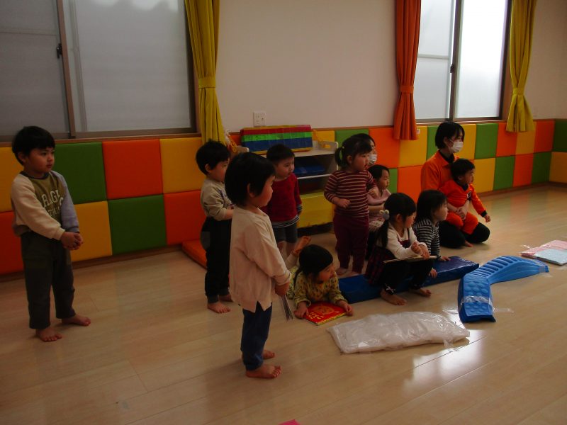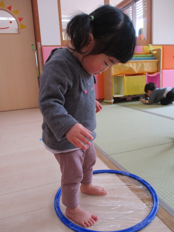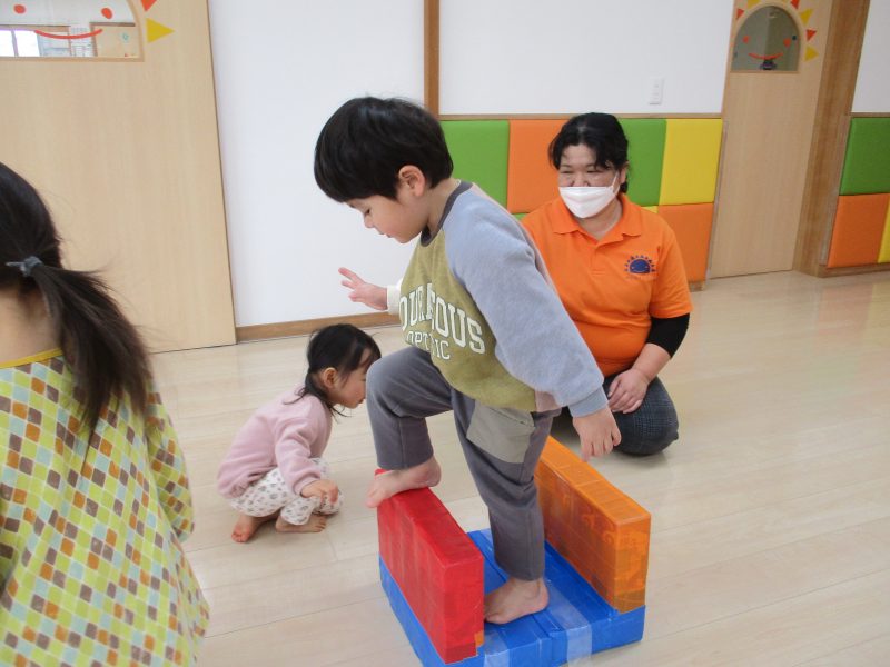 りんご組の子は牛乳パックの幅の所に立ち、ジャンプする姿も見られましたよ。