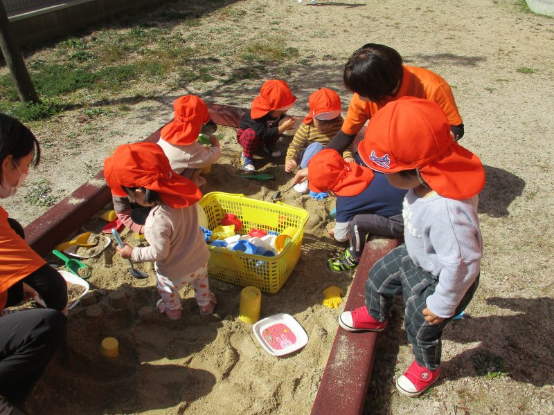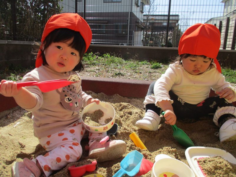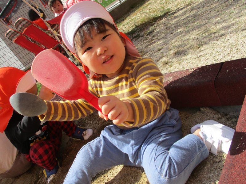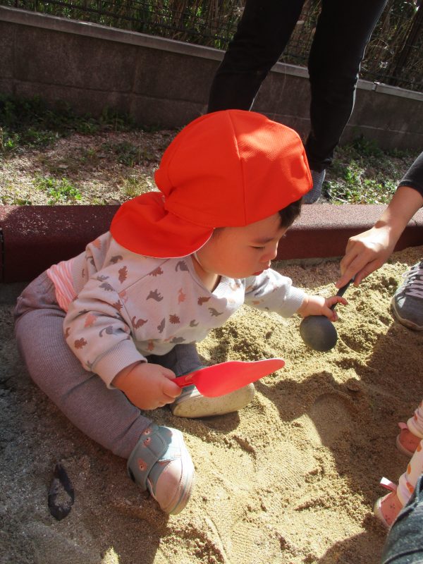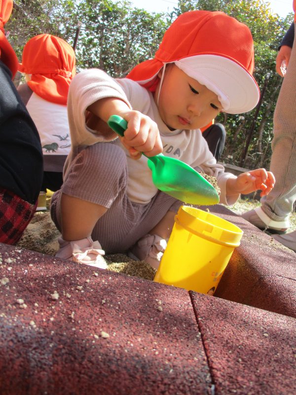 もも組さんも自分で砂をすくうのが上手になってきました。
