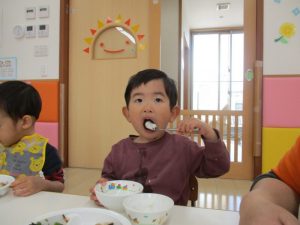りんご組さんは自分でしっかりと食べることが出来ます![]()