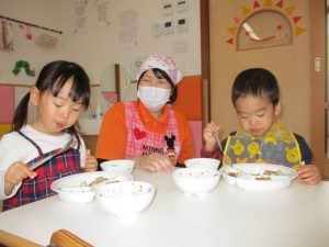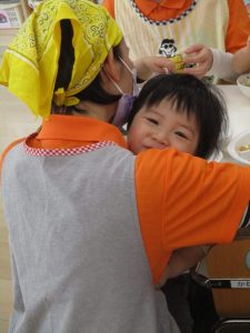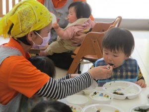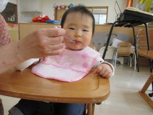 慣れない間は先生に抱っこで食べさせてもらうこともあります。