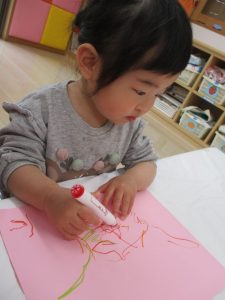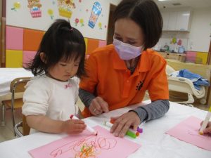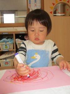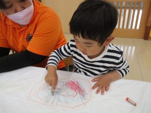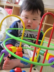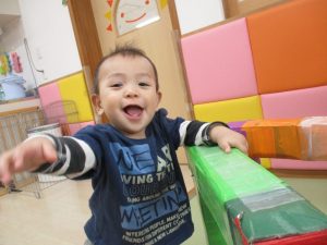 室内でも、ブロックや、お絵描き、体を使った遊びなどたくさんの遊びがあります。
