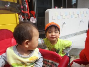 バギーに乗っているもも組さんに声をかけていましたよ(❤´艸`❤)