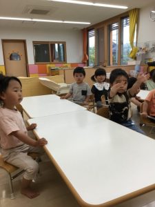 もも組?の友だちも真剣に見ていますよ。