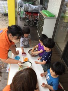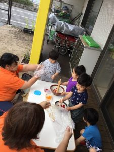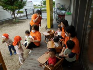 そんな時でも、楽しく、気持ちよく遊びたいなぁと、各クラスの先生達は考えてくれています。