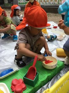 今週は、いちご組?りんご組?が「ゼラチンゼリー遊び」をしていましたよ☆
