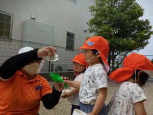 子どもたちは初めてみる物なので、恐る恐る触れてみていました。