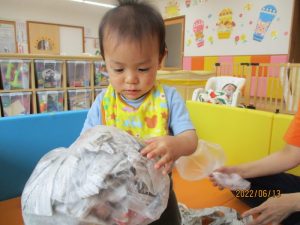 「ぷるぷるしているよ~」と先生が見せてくれると段々興味がでてきたようですよ