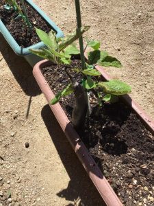園庭で育てている「なすび?の収穫」をしましたよ。
