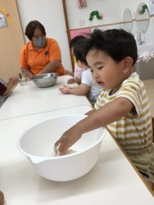 小麦粉に触れて「雪みたい❄」という子もいましたよ。