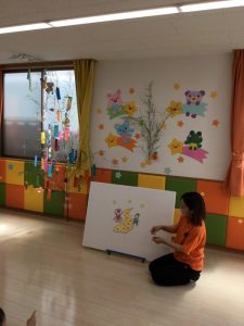 パネルシアターを使って「七夕」についてのお話しを聞きました。
