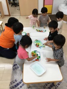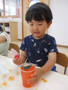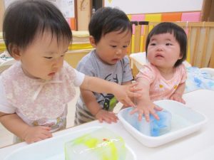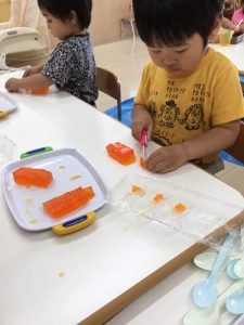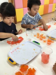「寒天ゼリー遊び」