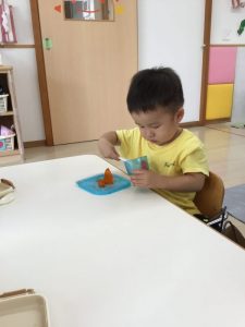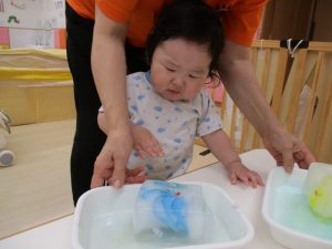 触れる、掬う、入れ物に移す、など遊びをじっくり楽しむ事ができました。
