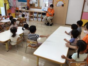 その後手洗いの時に、手で丸◯を作って滝にして遊んでいる子もいます