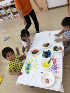 今週はりんごいちごももの3クラスで共同制作を行いましたよ。