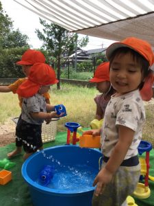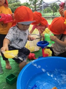 そして今週はいちご組とりんご組で『水遊び』をしましたよ〜✨