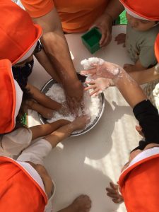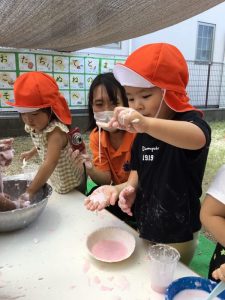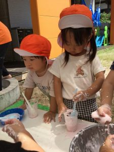 次第に「ドロ〜ン」ととろける様になる不思議さに、子ども達だけではなく、保育士も夢中になりました。