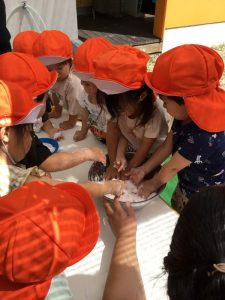 楽しく遊んで、服をみると、子どもも保育士も白い粉だらけになっていましたよ。